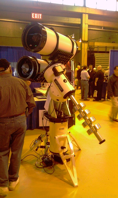 I had a number of offers to stay with people rather than pay extra for the hotel including an invite to stay at Richard Crisps ranch in California (Richard is well known as an expert on Narrow Band imaging and is widely acknowledged as the person who started the ball rolling for the amateur imager), I also had a kind offer to stay with some people from Cherry Springs (Mike and Dawn) that I met up with at the show so I thank them all very much for their hospitality. In the end I decided to stick it out in case a stand by seat became available so since I was stuck here I decided to try and put some pictures and a video (if it works!) on my site so that others can see what a large exhibition such as this had to offer.